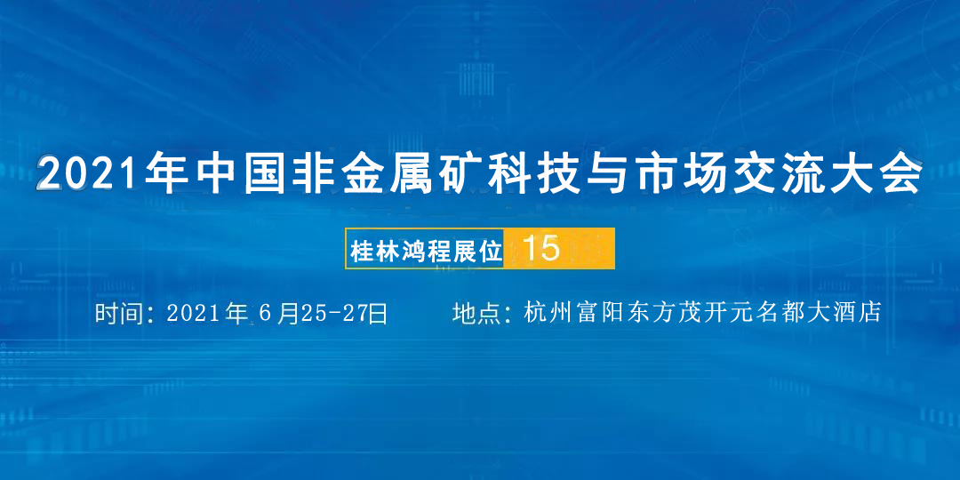 喜!大!普!奔!2021年中國非金屬礦科技與市場交流大會將于2021年6月25-27日,在杭州富陽東方茂開元名都大酒店如期舉辦!桂林鴻程將現身與您來一場盛大約會...
